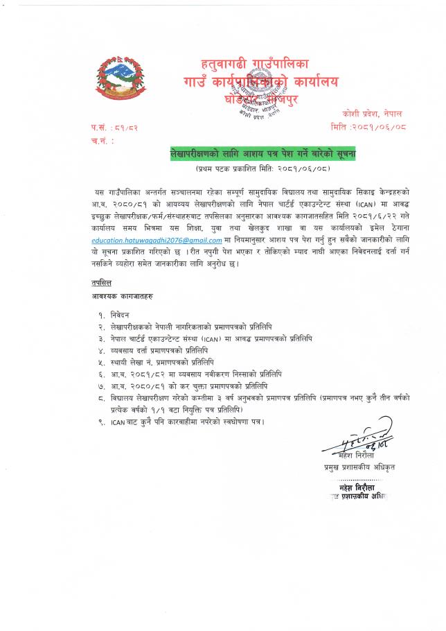 » लेखापारीक्षणको लागि आशय पत्र पेश गर्ने बारेको सुचना।
